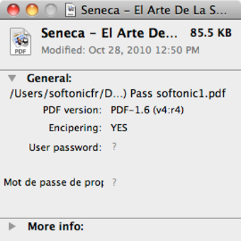 Recover PDF Password est une application conçue pour les utilisateurs de Mac qui cherchent à récupérer des mots de passe oubliés pour des fichiers PDF. Ce logiciel appartient à la catégorie de la sécurité et de la confidentialité, plus précisément au sous-domaine de l'encryption. Il propose une interface conviviale qui permet aux utilisateurs de déverrouiller facilement leurs documents PDF protégés, rendant ainsi leur contenu accessible sans compromettre la sécurité.